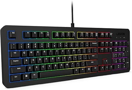 About this item Optimal Gaming: The K310 Wired Keyboard has a full-size layout, programmable keys, and a 24-key rollover membrane. The compact design and adjustability make it perfect for both tournaments and casual use Lenovo Legion Lighting: Let your style shine with dynamic 5-zone RGB illumination. This keyboard has a pre-programmed range of colors and Fn lighting effects, so you can command the vibe of your setup with Fn volume and multimedia controls Durable Design: Streamlined and compact design that’s recognizably Legion. Play better, for longer, with 20 million click key lifecycles, a streamlined and compact design, ultra-fast reaction times,…