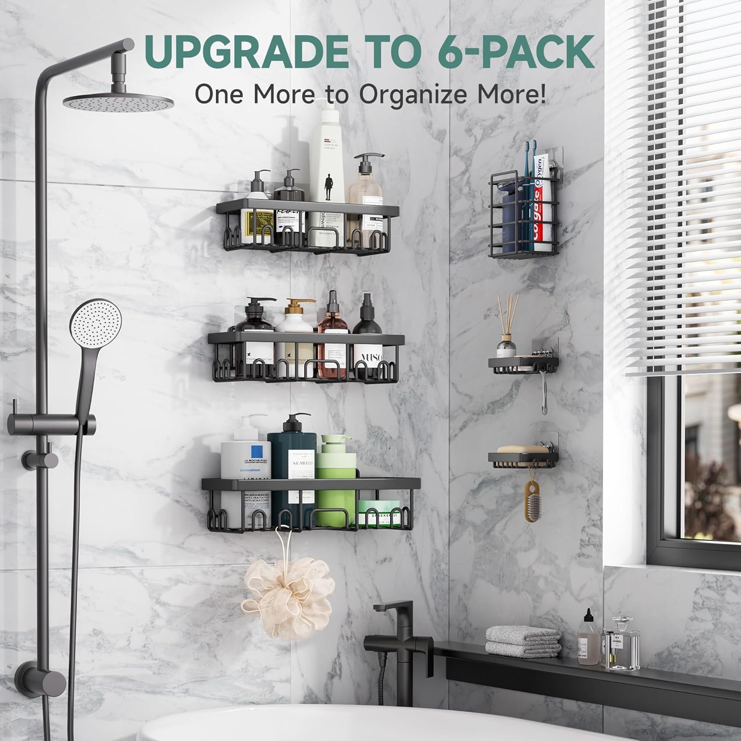 - Comprehensive Organization: This 6-piece set includes large, medium, and small caddies, along with soap and toothbrush holders, providing versatile storage for all your shower essentials